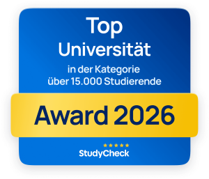 Im RankingExterner Link, das das Studierendenportal "StudyCheck" veröffentlicht hat, liegt sie auf Platz 5 von 40 geränkten Universitäten, was für eine sehr große Zufriedenheit ihrer Studierenden spricht.